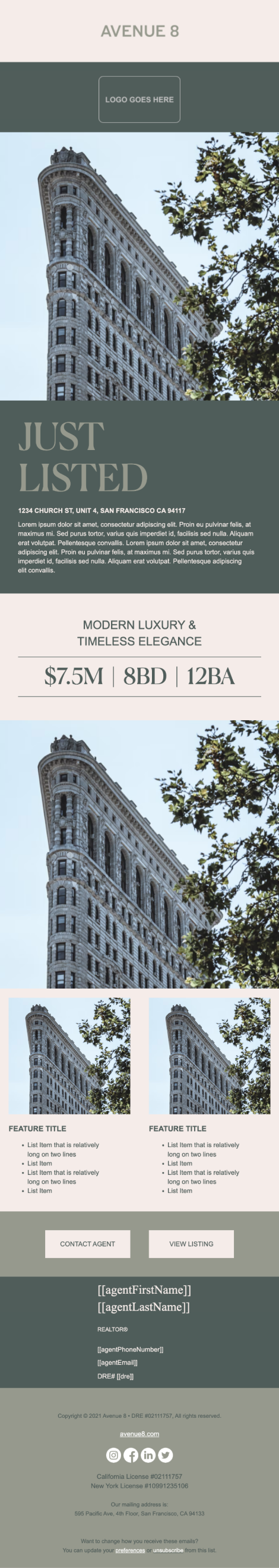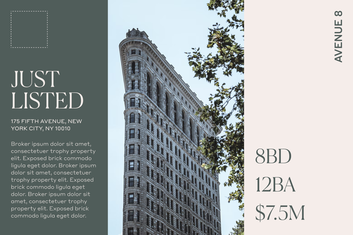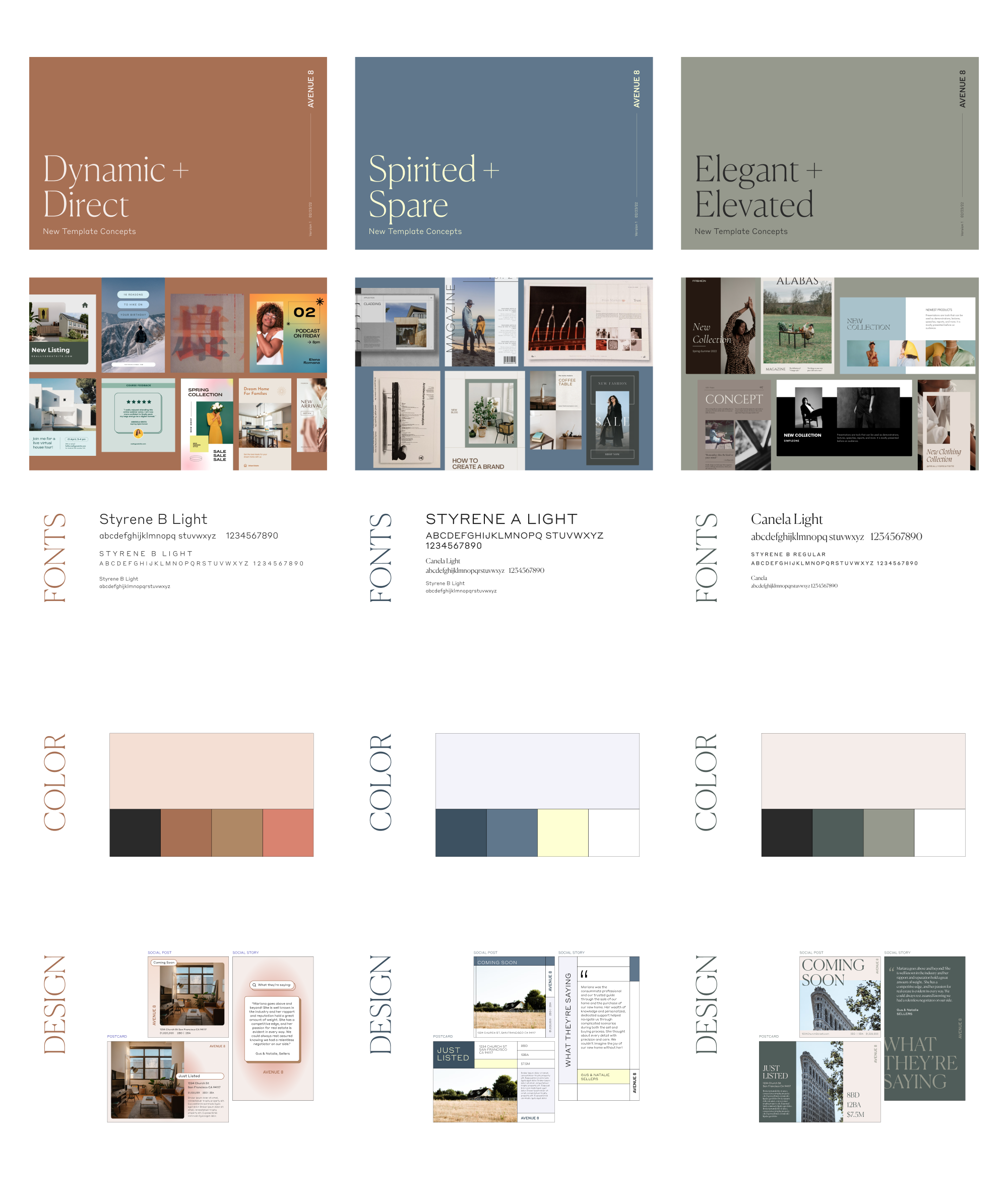 After a couple rounds of review, Elegant + Elevated emerged as the winner. We expanded the designs to include a multi-photo postcard, a double-sided flyer, two social post and story templates, and both single and multi-property emails.